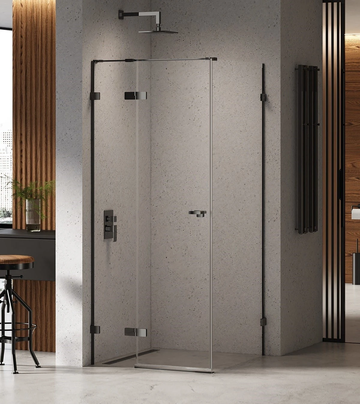 Kabina Eventa Black Chrome posiada eleganckie, błyszczące czarne detale. Kabina prysznicowa została wyposażona w bezpieczne, hartowane szyby o grubości 8mm, z powłoką ochronną Active Shield 2.0.