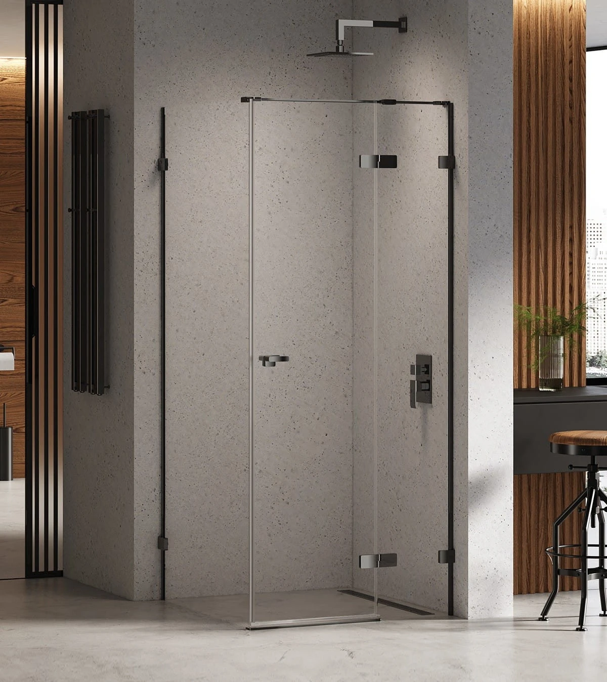 Kabina Eventa Black Chrome posiada eleganckie, błyszczące czarne detale. Kabina prysznicowa została wyposażona w bezpieczne, hartowane szyby o grubości 8mm, z powłoką ochronną Active Shield 2.0.