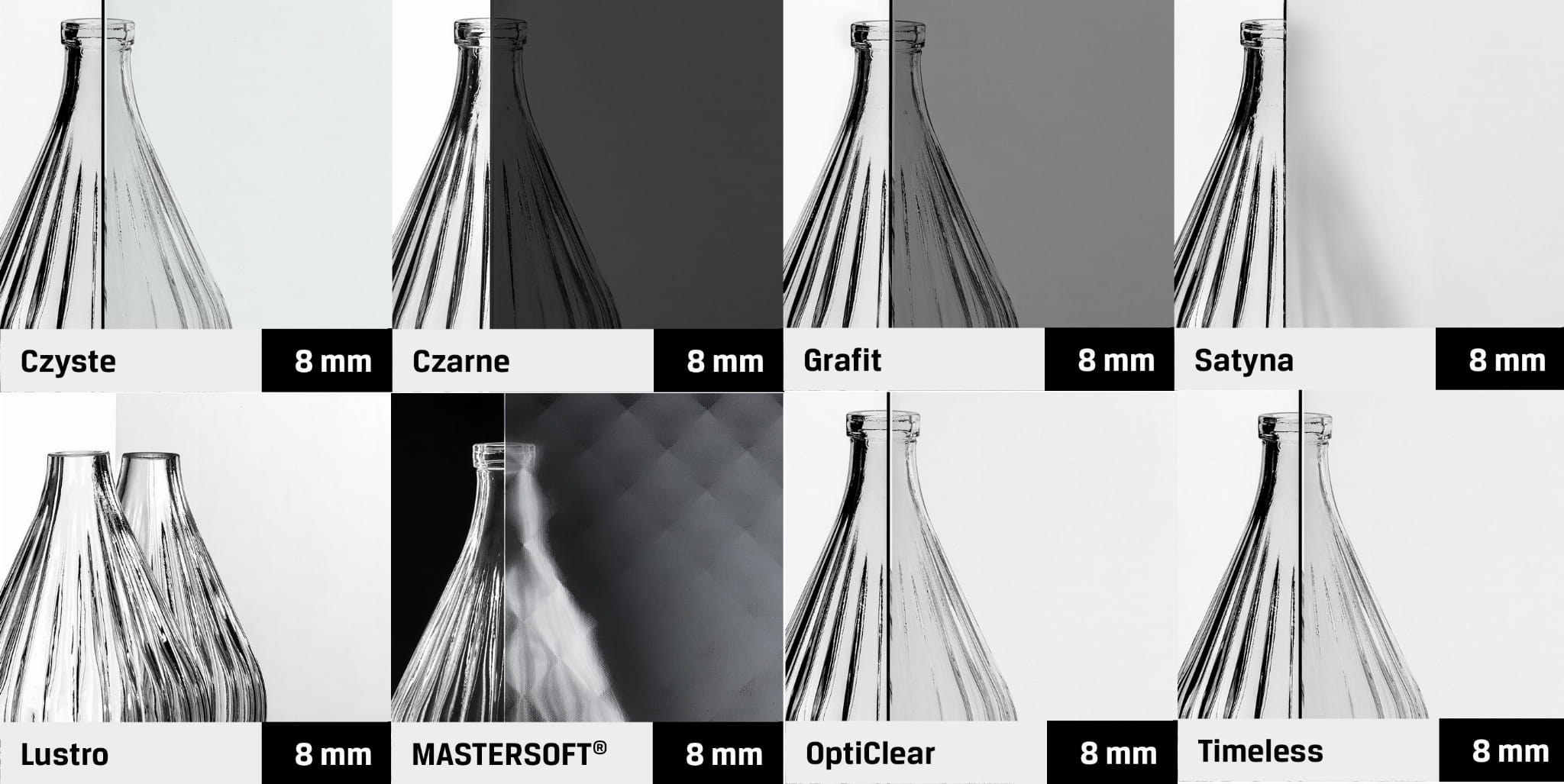 Szkło Mastersoft - Szkło o dekoracyjnej powierzchni w postaci ornamentu. Charakteryzuje się lekko pikowaną strukturą, nadającą efektowne wykończenie w formie 3D.
