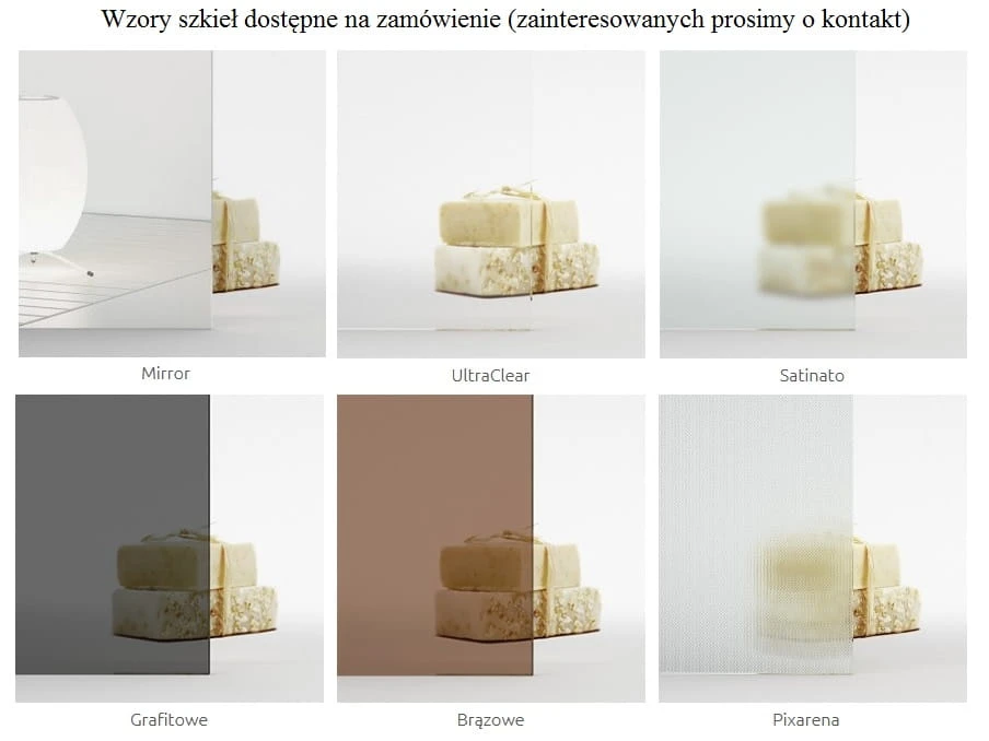 - Zawiasy oraz klamry mocujące zostały zlicowane z taflą szkła - jednolita powierzchnia ułatwiająca czyszczenie kabiny.