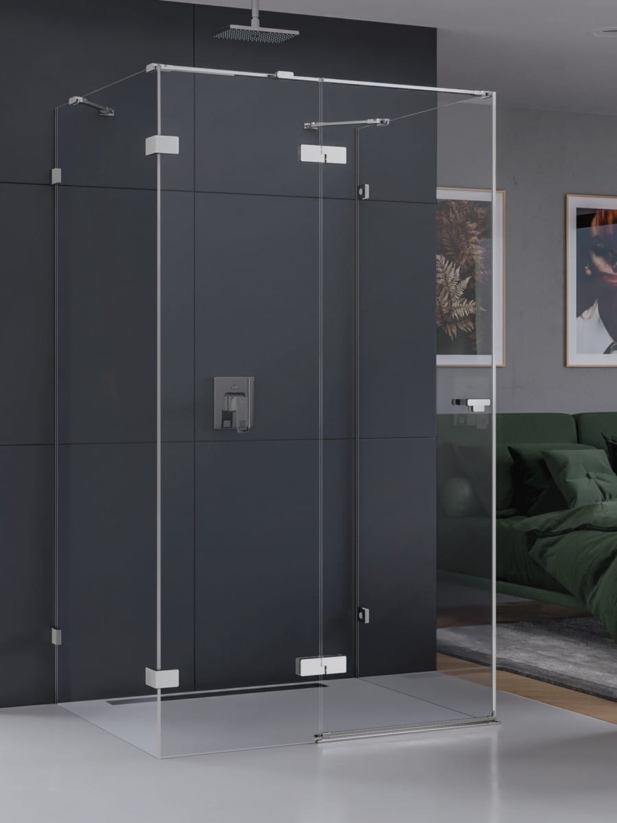 1) Kabina na wymiar w szkle czystym, czarnym, grafitowym, satynowym, lustrzanym, Mastersoft, OptiClear lub Timeless.