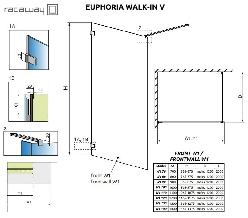 Kabina Radaway Euphoria walk-in V 110x200 szkło przejrzyste