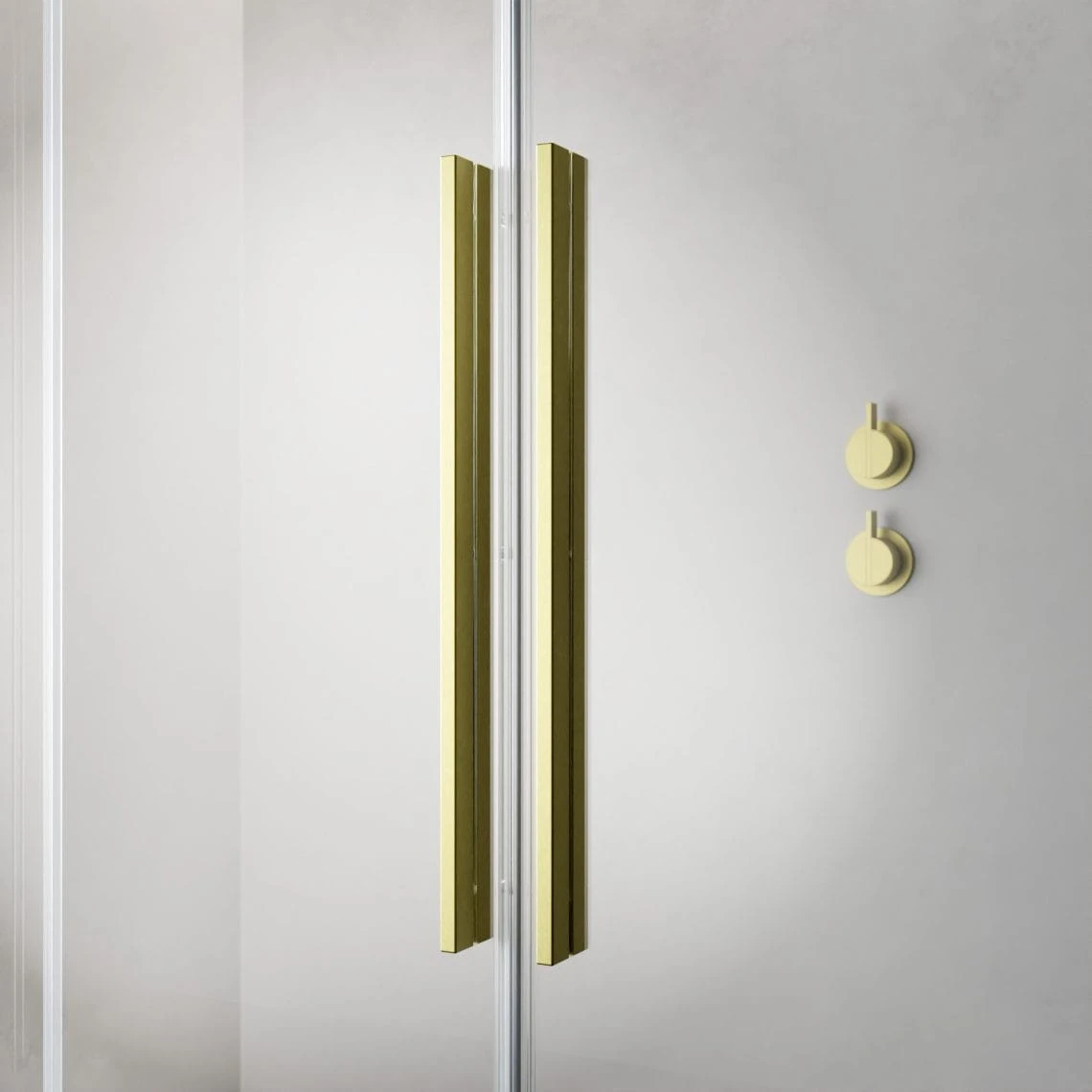 Furo SL Brushed Gold to nowy model, w którym zastosowano stabilizator kątowy L, który pozwala ustawić kabinę w dowolnej odległości od przeciwległej ściany. Stabilizator kątowy nie ogranicza górnej przestrzeni w kabinie w odróżnieniu od standardowych rozwiązań.
