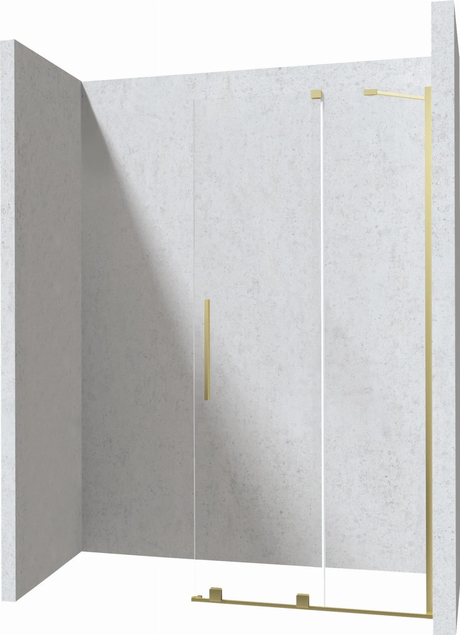 Ścianka prysznicowa walk-in przesuwna o wymiarach 90x195 Prizma firmy Deante w szkle przejrzystym i detalami w kolorze szczotkowanego złota.