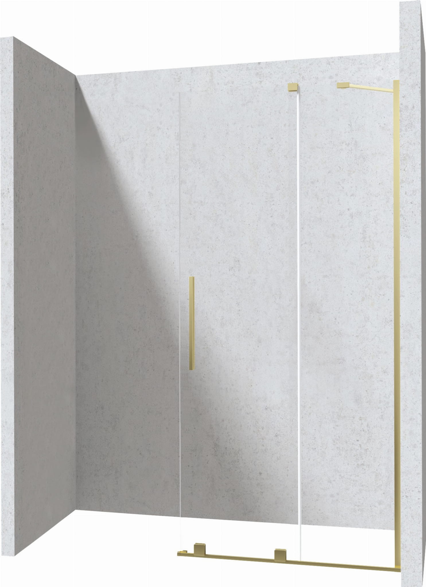 Ścianka prysznicowa walk-in przesuwna o wymiarach 100x195 Prizma firmy Deante w szkle przejrzystym i detalami w kolorze szczotkowanego złota.