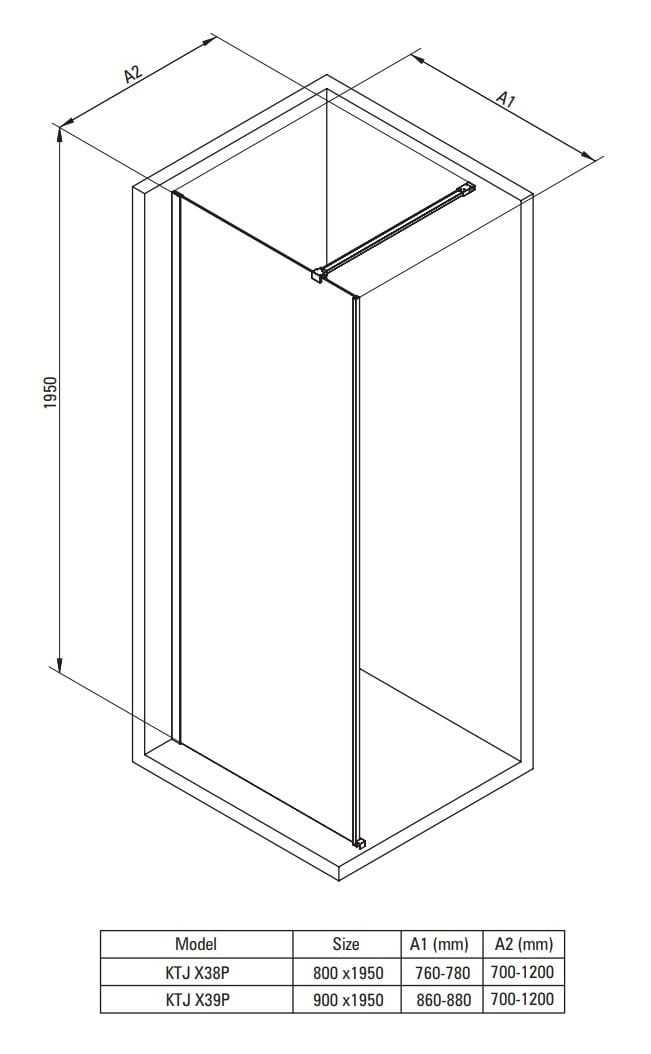 Ścianka prysznicowa walk-in 90x195 Prizma Deante bianco