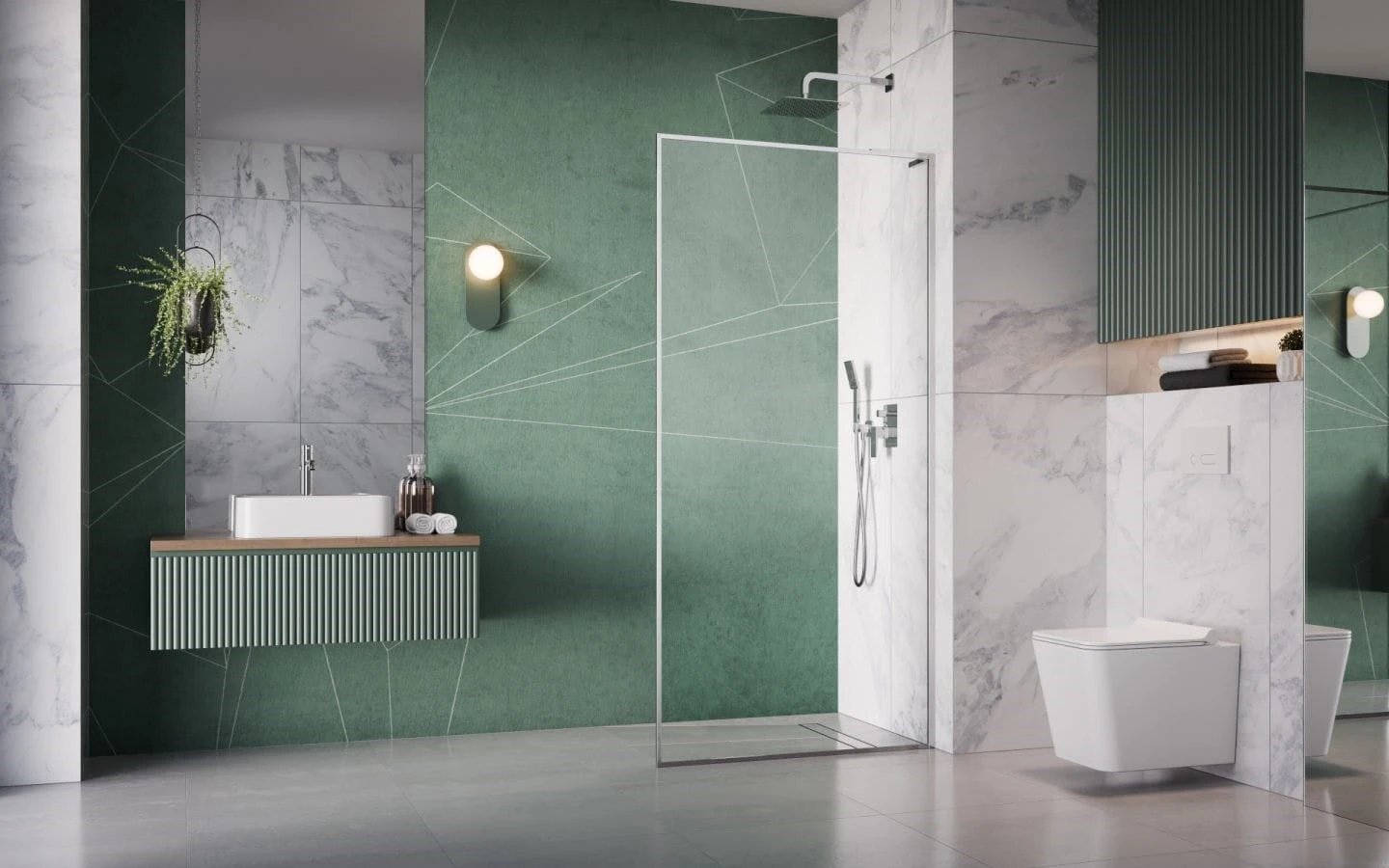 - Kabina typu walk-in (bezdrzwiowa).