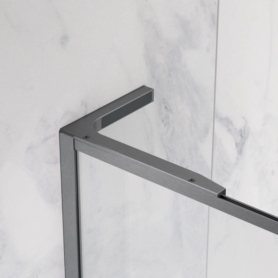 Kabiny Modo F SL Brushed GunMetal II wyróżnia ozdobna rama w kolorze szczotkowanego GunMetalu oraz stabilizator kątowy L, który nadaje konstrukcji dodatkowej lekkości.