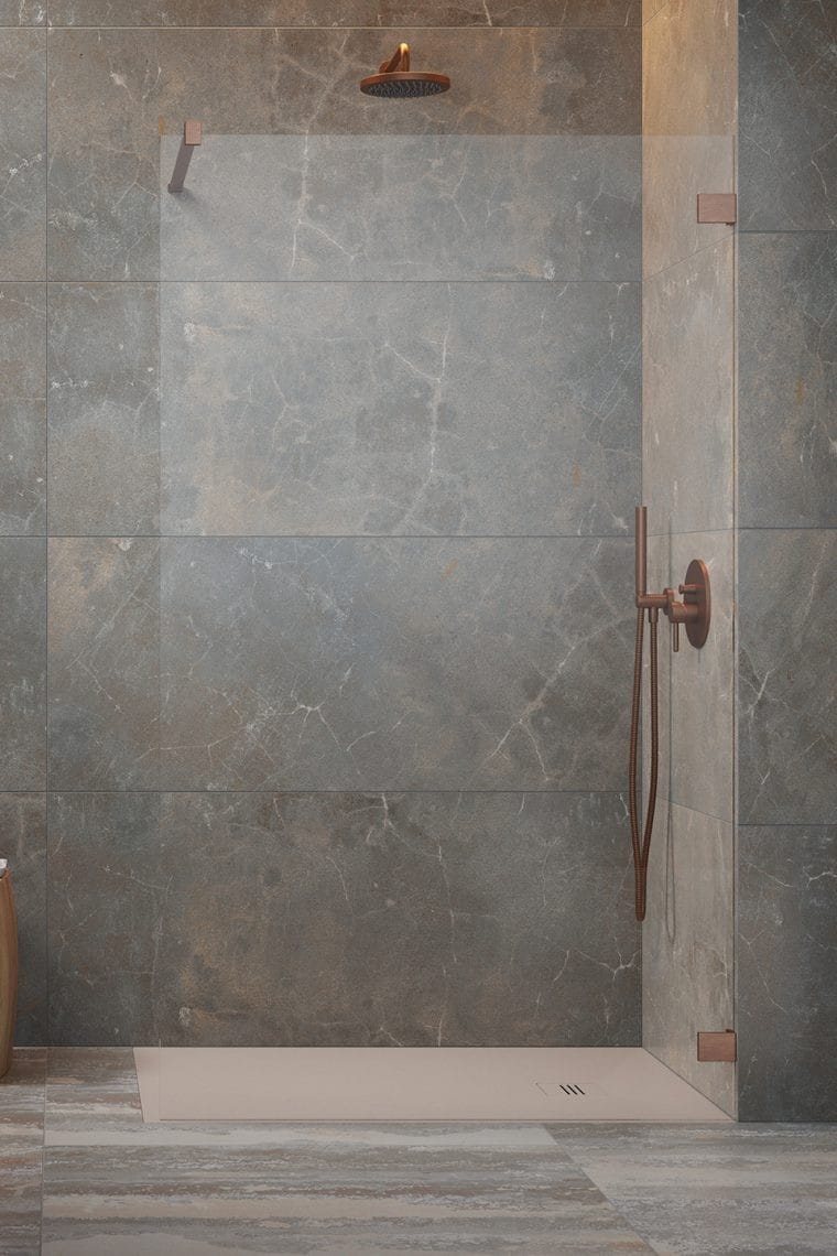 Kabinę Essenza Pro 8 Brushed Copper wyróżniają elementy w kolorze szczotkowanej miedzi, wspaniale wtapiające się w jej konstrukcję. Stworzona z myślą o tych, którzy cenią sobie zarówno funkcjonalność jak i walory estetyczne. Jej modernistyczny wygląd sprawia, że idealnie nadaje się do łazienek nowoczesnych, przy których projektowaniu stosuje się najbardziej praktyczne rozwiązania. Jest pokryta powłoką Easy Clean mającą właściwości hydrofobowe, które sprawiają, że spływająca po szybach woda nie pozostawia osadów. Ułatwia to czyszczenie kabiny i oszczędza Państwu czas.