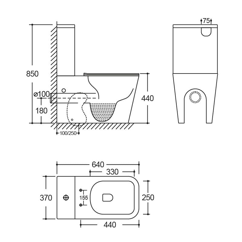 Kompakt WC Tryton wyróżnia się prostokątną sylwetką i białym wykończeniem, co nadaje mu elegancki wygląd. Wymiary kompaktu to 64x37x85 cm. Proste linie i harmonijny kształt bryły sprawiają, że ma unikalny design, który doskonale pasuje do różnych łazienek, takich jak nowoczesne, skandynawskie, minimalistyczne czy loftowe.