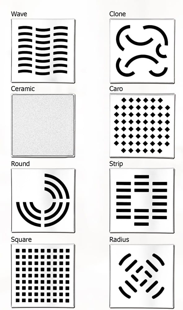 Po zakupie prosimy o informację o wybranym wzorze pokrywy (Square, Round , Wave, Radius, Strip, Caro, Clone lub Ceramic-do wypełnienia płytką).