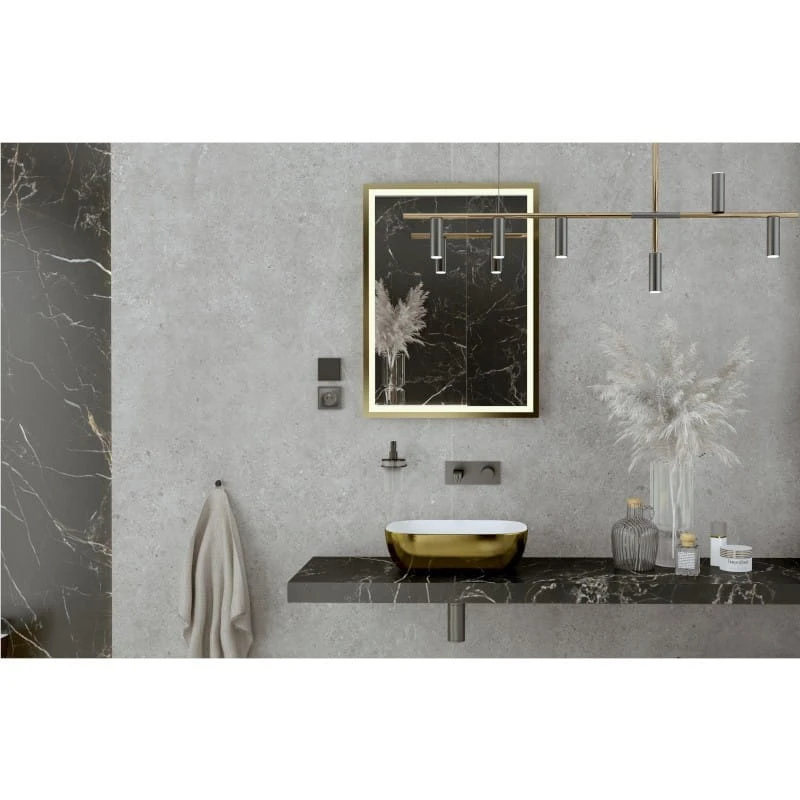 Lustro HEBE GOLD posiada prostokątny kształt i wyróżnia się szykowną ramą w złotym kolorze. Model odpowiedni jest do instalacji w pionie lub poziomie. Standardowy rozmiar lustra HEBE GOLD sprawdzi się w każdej łazience, niezależnie od jej powierzchni i pozwoli stworzyć nietuzinkowy projekt wnętrza w stylu paryskim, glamour czy nowoczesnym. Lustro wiszące doskonale komponuje się ze złotymi dodatkami- np. baterią, umywalką nablatową czy miską WC. Jeśli zależy Ci na świeżym i luksusowym wyglądzie pomieszczenia, lustro HEBE GOLD spełni Twoje oczekiwania.
