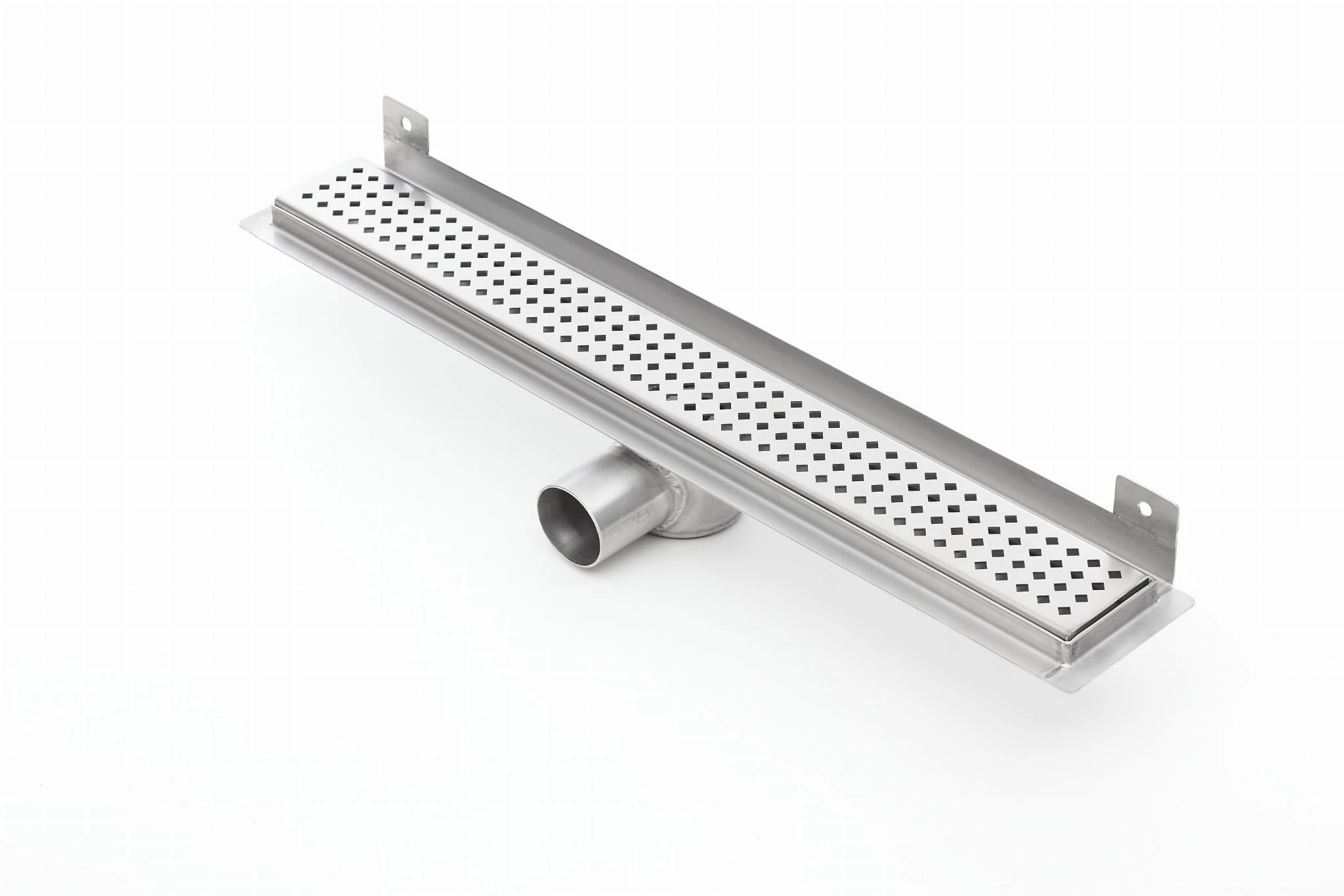 Odpływ liniowy ścienny z flanszą i metalowym syfonem Kesmet 90 cm z rusztem Square