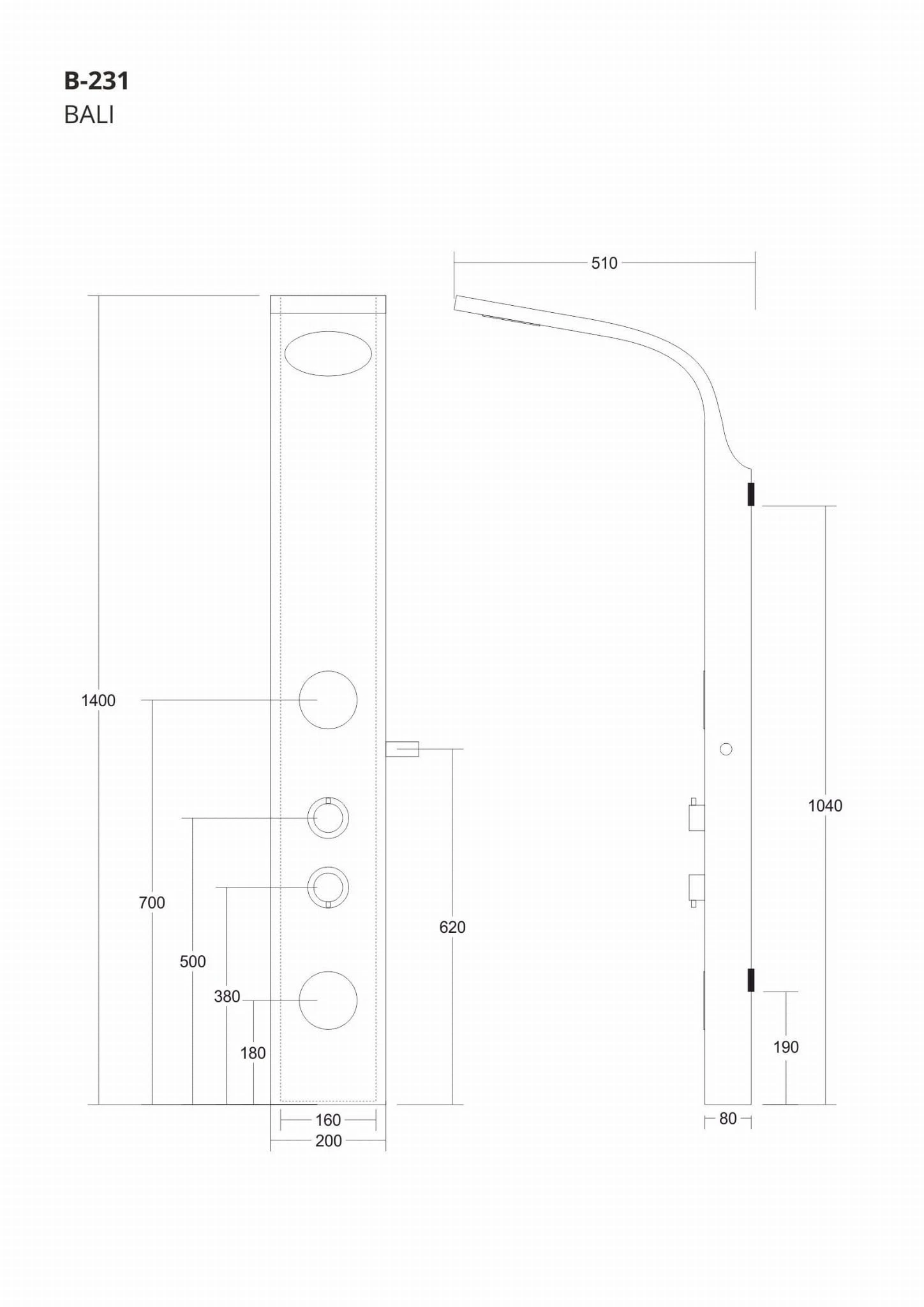 - Wysokość panelu 140 cm