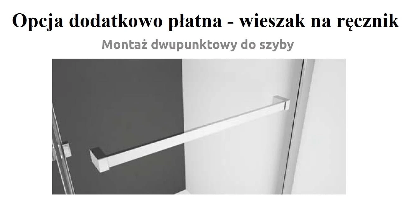 3) parawan z wieszakiem na ręcznik montowanym do szyby.