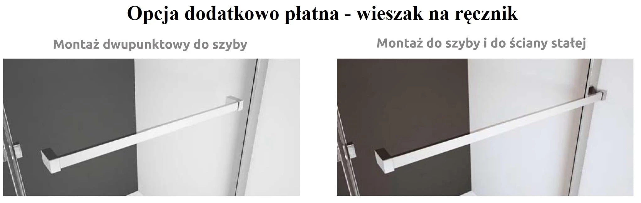3) parawan z wieszakiem na ręcznik montowanym do szyby lub do szyby i ściany łazienki.