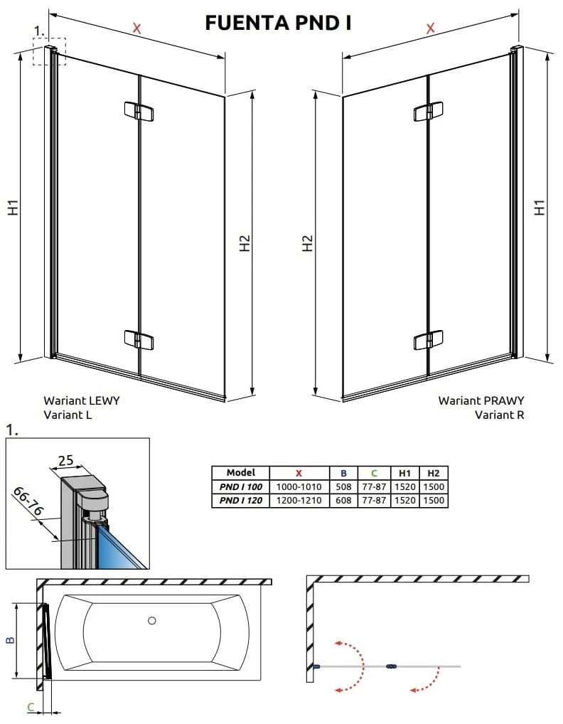 Parawan nawannowy Radaway Fuenta PND I 120x152 lewy