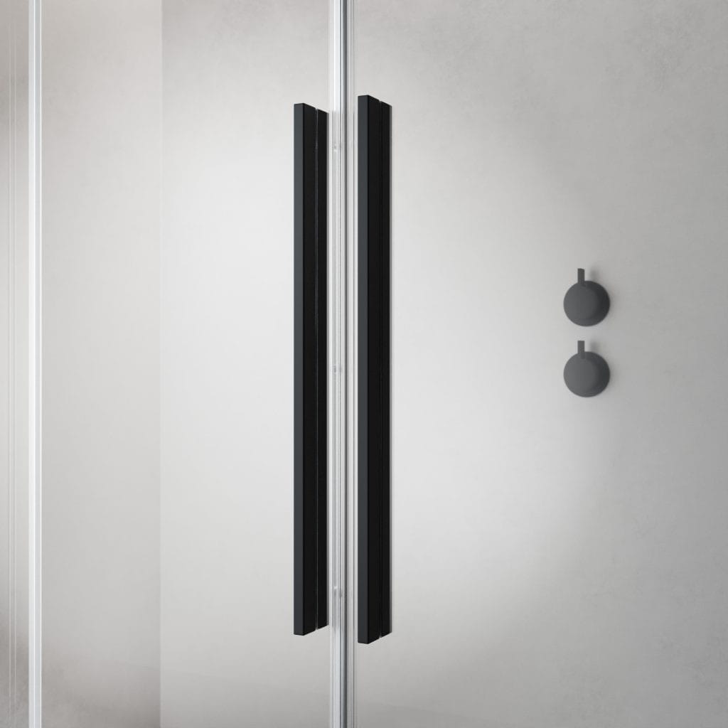 Seria Furo Black to niespotykana dotąd jakość wśród przesuwnych parawanów prysznicowych. Dzięki rezygnacji z górnej prowadnicy i osadzeniu drzwi na rolkach uzyskaliśmy drzwi o niezwykłej elegancji, lekkości i przejrzystości. Rolki zostały zlicowane od wewnętrznej strony ze szkłem, ułatwiając utrzymanie parawanu w czystości. Przy otwarciu drzwi przesuwają się przed stały segment, dzięki czemu otrzymujemy przestronne i wygodne wejście.