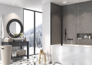 - Jedno skrzydło jest nieruchome (mocowane na stałe do wanny). Drugie jest uchylne do środka i na zewnątrz wanny.