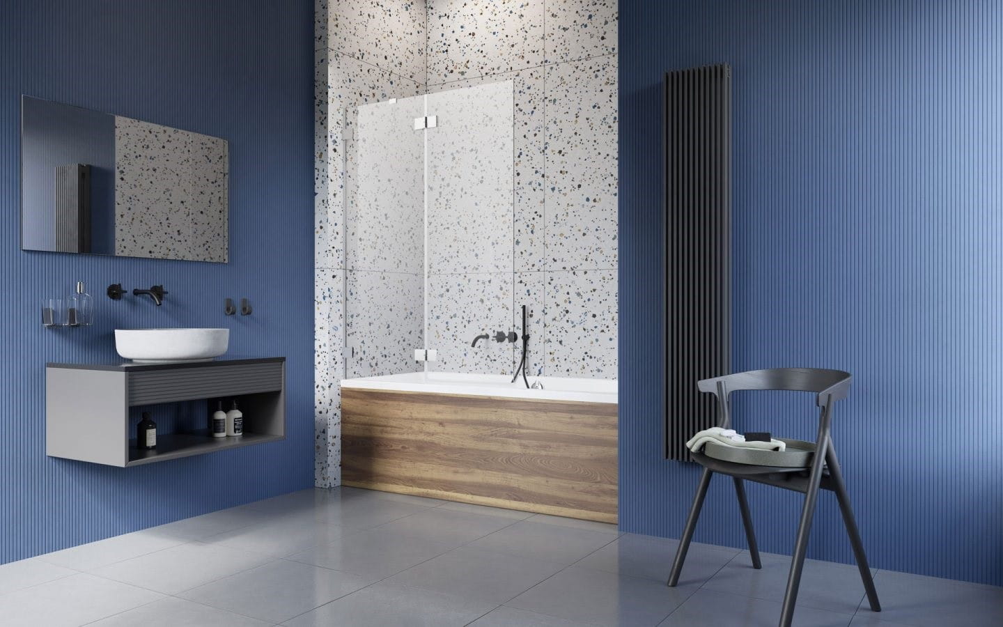- Pierwsze skrzydło przy ścianie jest nieruchome, drugie skrzydło jest uchylne na zewnątrz wanny.
