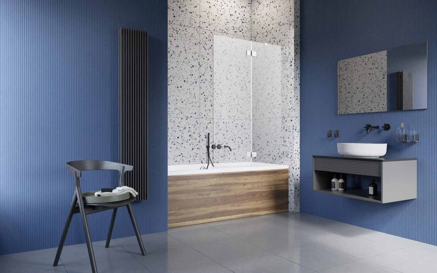 - Klamry i zawiasy zostały zlicowane z taflą szkła - jednolita powierzchnia ułatwia czyszczenie parawanu.