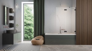 - Klamry i zawiasy zostały zlicowane z taflą szkła - jednolita powierzchnia ułatwia czyszczenie parawanu.