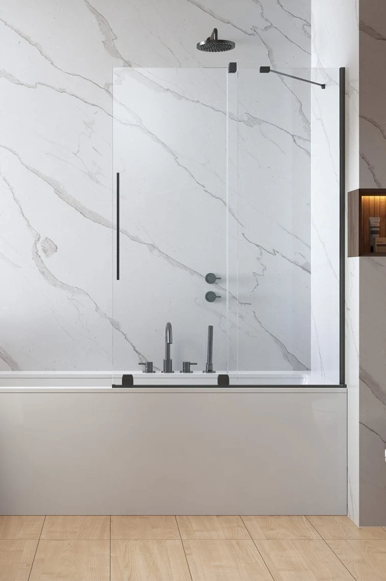 Parawan nawannowy Furo Brushed GunMetal PND II firmy Radaway w szkle przejrzystym z detalami w kolorze szczotkowanego GunMetalu.