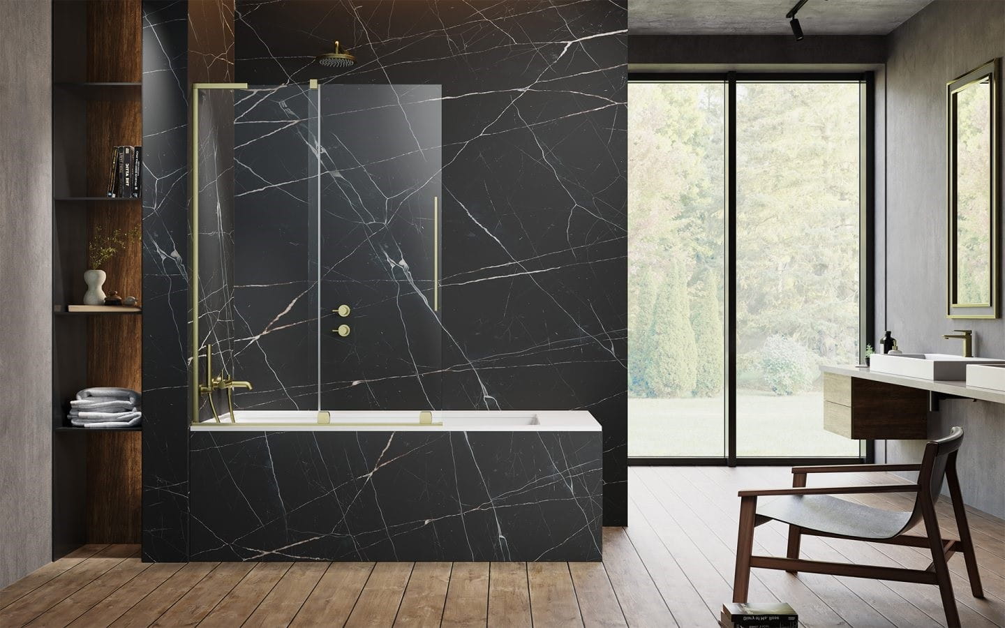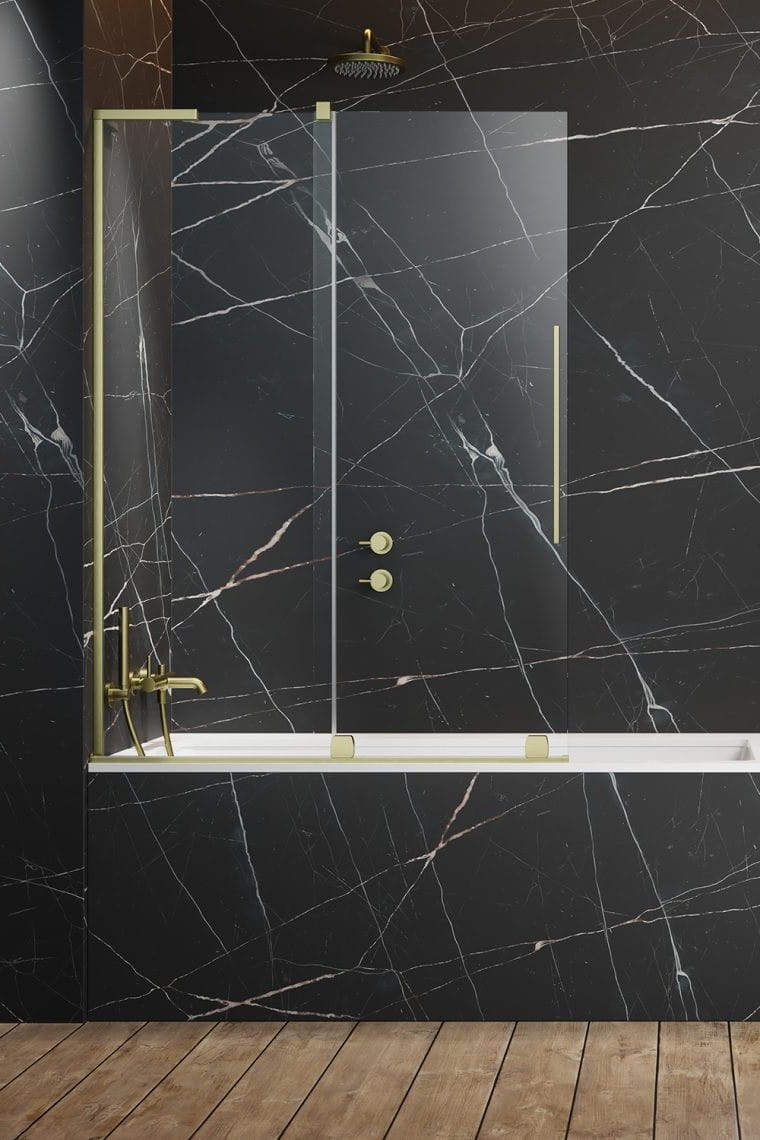 Parawan nawannowy Furo SL Brushed Gold PND II firmy Radaway w szkle przejrzystym z detalami w kolorze szczotkowanego złota.