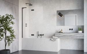 Parawan Essenza 8 SL Black PND II wykonany ze szkła o grubości 8 mm z powloką Easy Clean z czarnymi detalami. W produkcie zastosowano nowoczesny stabilizator kątowy L.