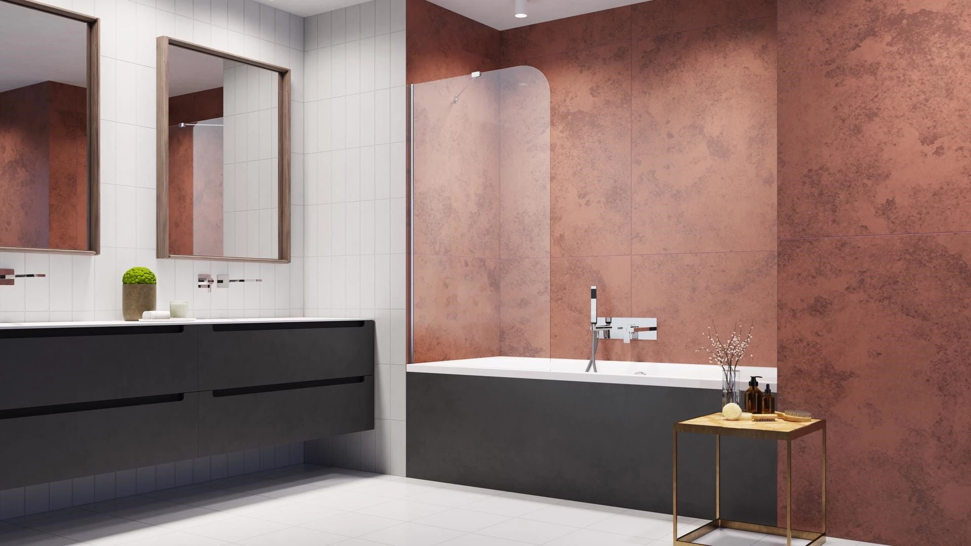 - Parawan jednoczęściowy nieruchomy, montowany na stałe do wanny.