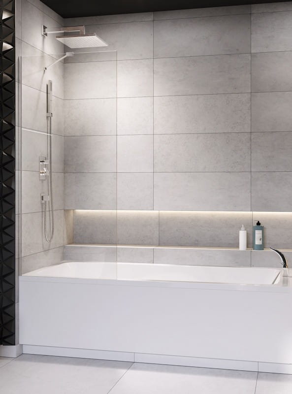 - Parawan jednoczęściowy nieruchomy, montowany na stałe do wanny.