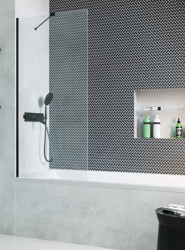 - Parawan jednoczęściowy nieruchomy, montowany na stałe do wanny.