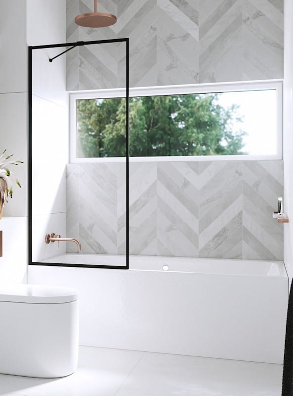- Parawan jednoczęściowy nieruchomy, montowany na stałe do wanny.