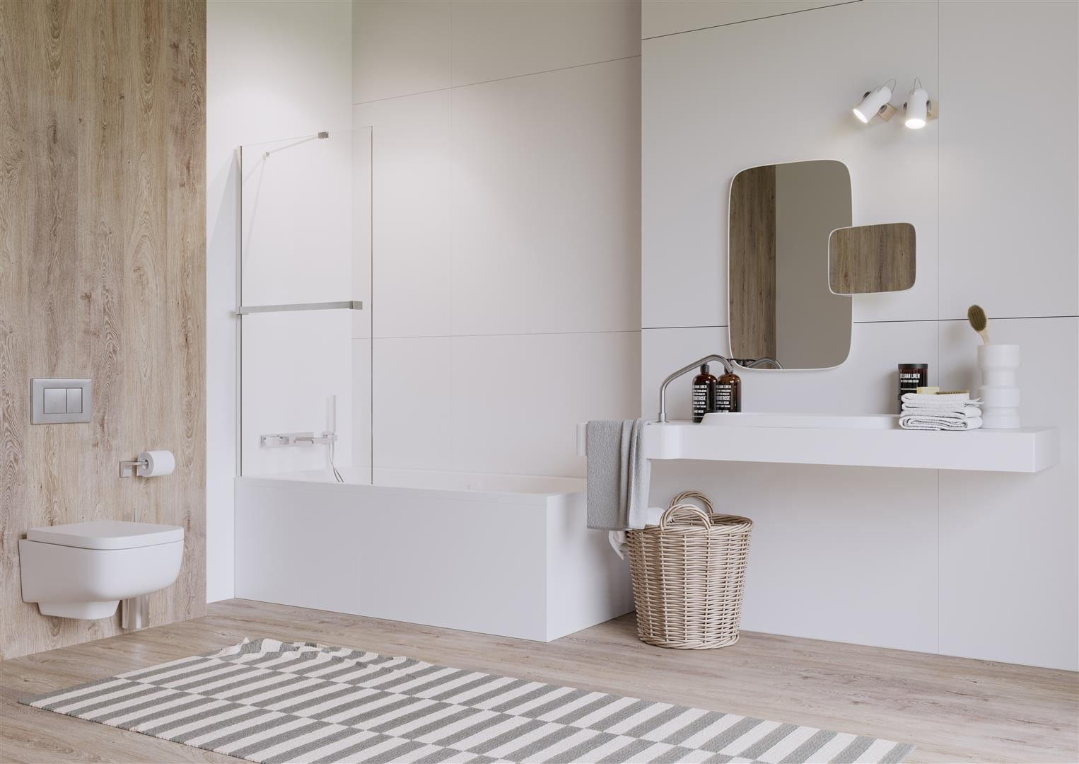 - Parawan jednoczęściowy nieruchomy, montowany na stałe do wanny.