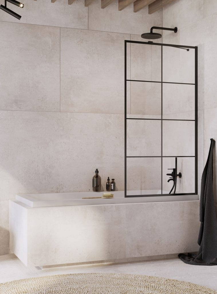 - Parawan jednoczęściowy nieruchomy, montowany na stałe do wanny.