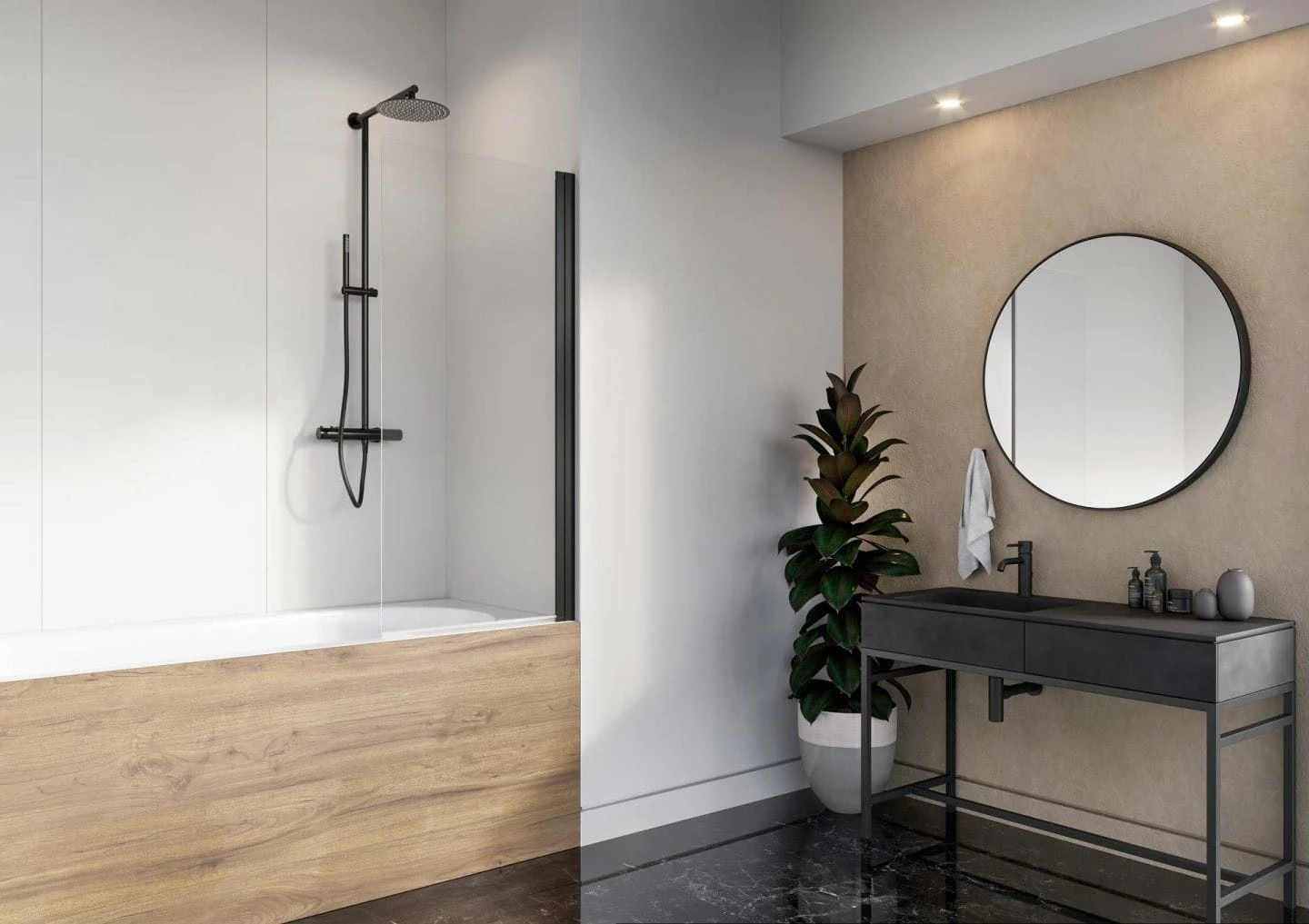 Parawan nawannowy Radaway Nes 8 Black PNJ I prawy przejrzysty