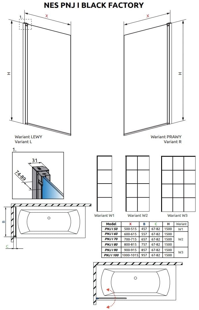 Parawan nawannowy Radaway Nes Black PNJ I Factory lewy