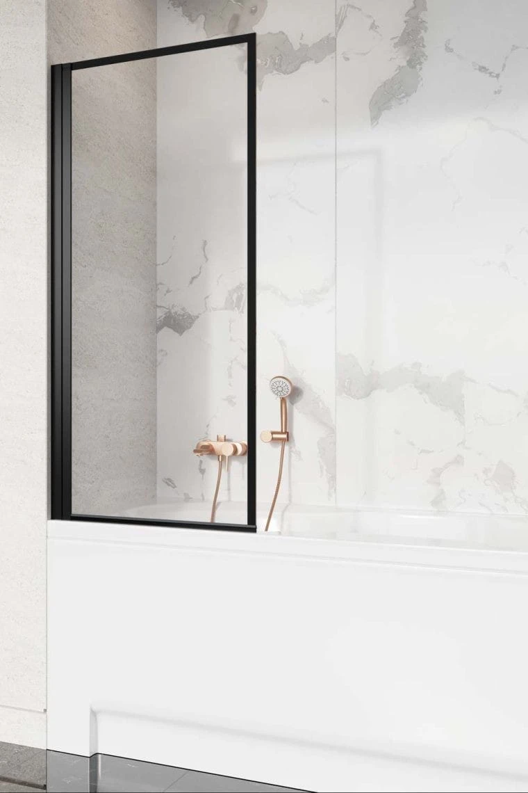 - Parawan jednoczęściowy wahadłowy (uchylny do wewnątrz i na zewnątrz wanny) w szkle Frame/przejrzystym.