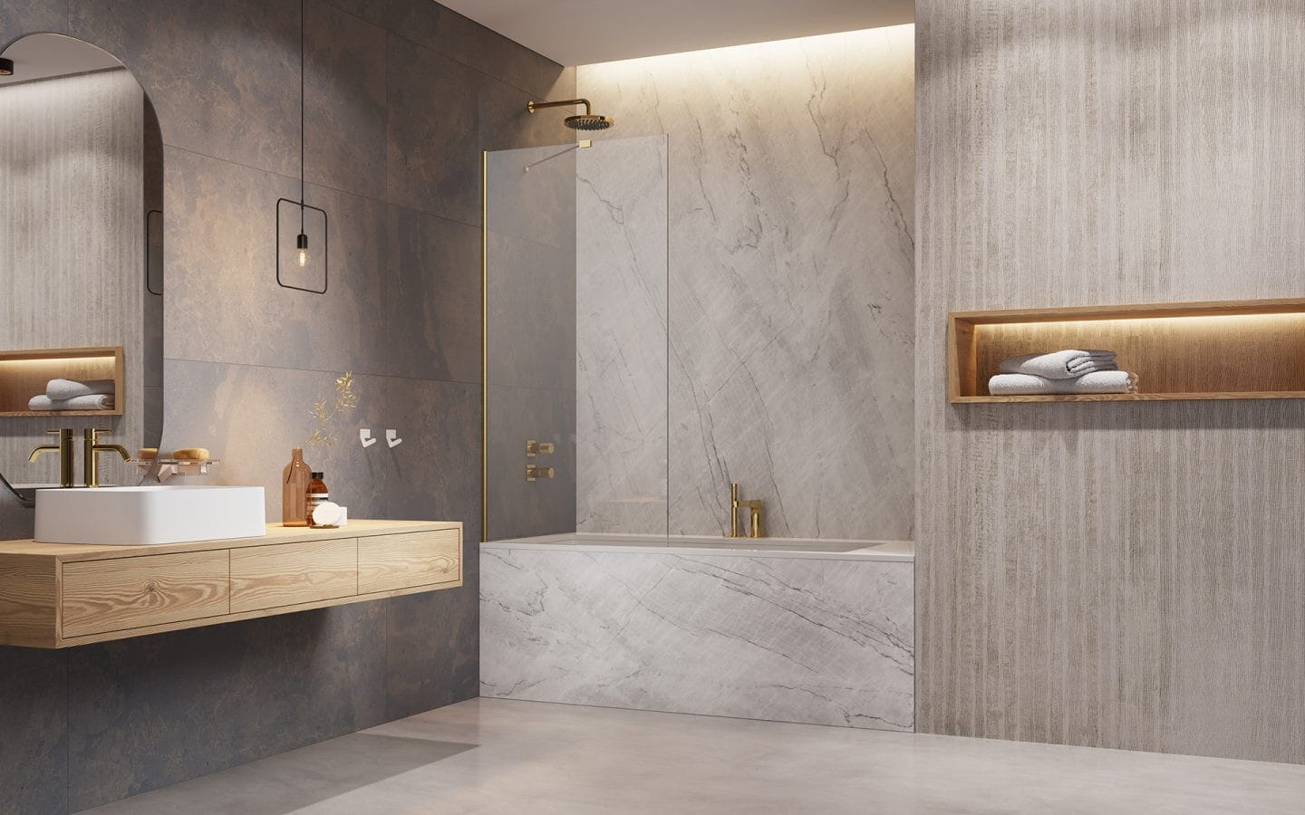 Parawan nawannowy jednoczęściowy nieruchomy Modo New Gold PNJ II w szkle przejrzystym.