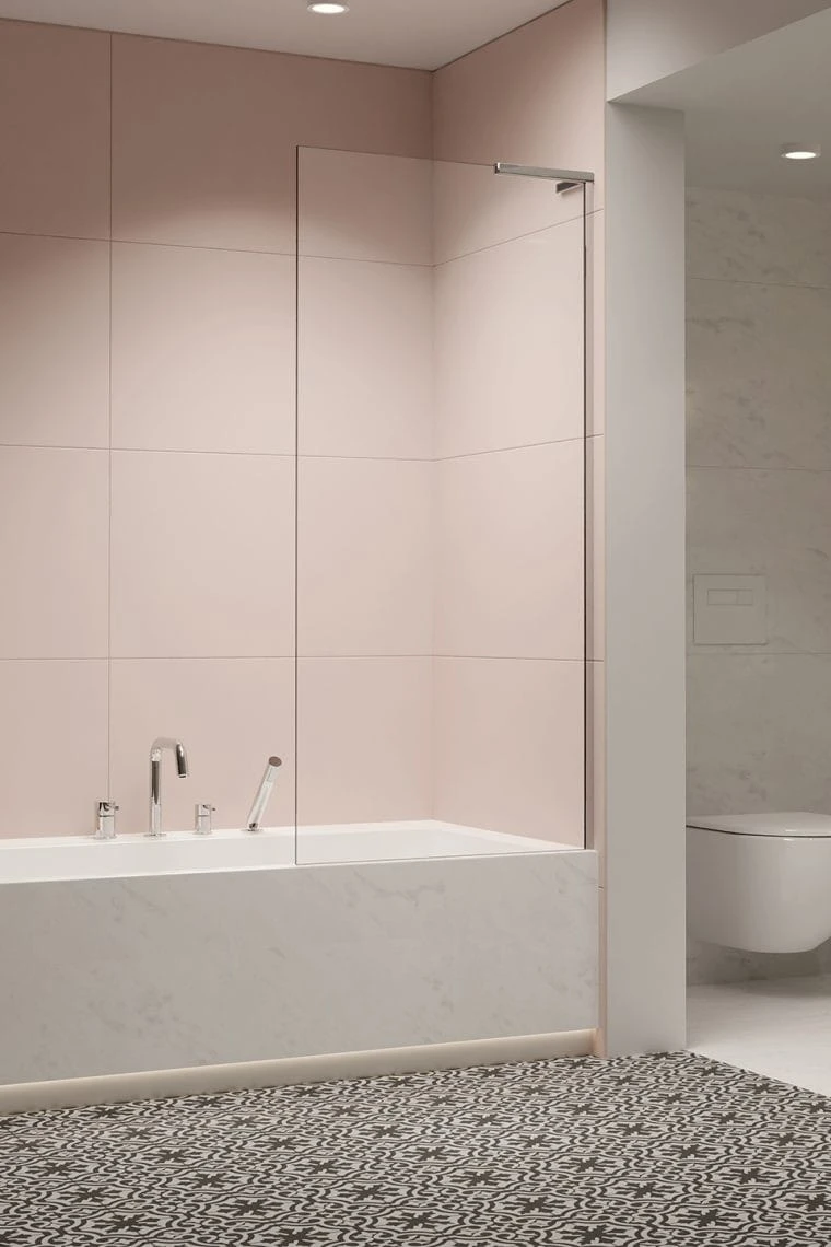 - Parawan jednoczęściowy nieruchomy, montowany na stałe do wanny.