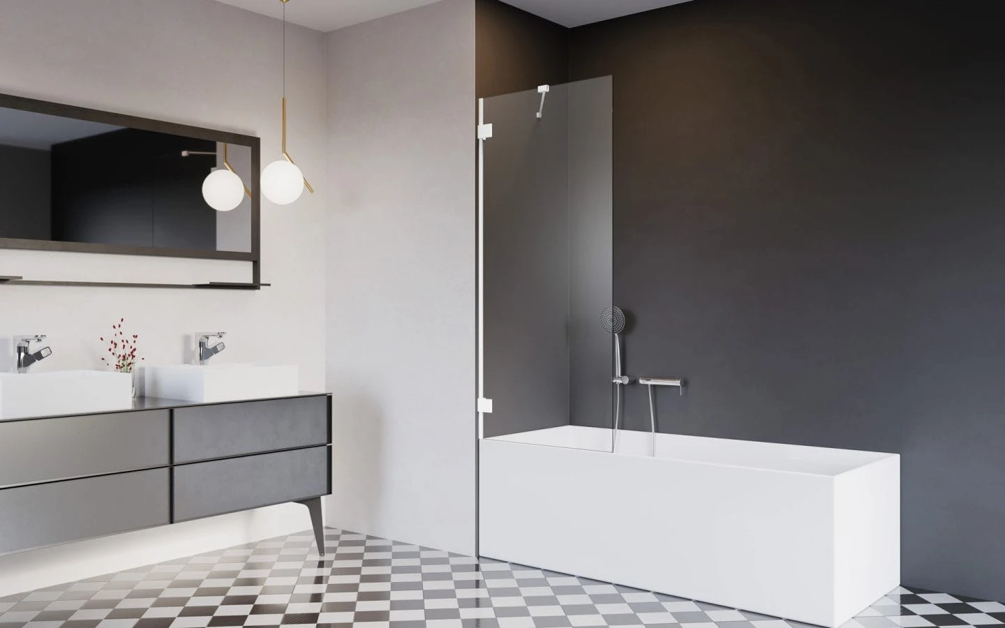 - Szkło bezpieczne, hartowane o grubości 6 mm, pokryte powłoką EasyClean, która ułatwia utrzymanie parawanu w czystości. Dzięki powłoce EasyClean na powierzchni szkła osadza się mniej zanieczyszczeń i są one łatwiejsze do usunięcia. Oszczędzają Państwo czas, który należy poświęcić na czyszczenie standardowego parawanu. Oszczędzają Państwo środki czystości, gdyż do czyszczenia wystarczy miękka wilgotna ściereczka zamiast silnych środków chemicznych.