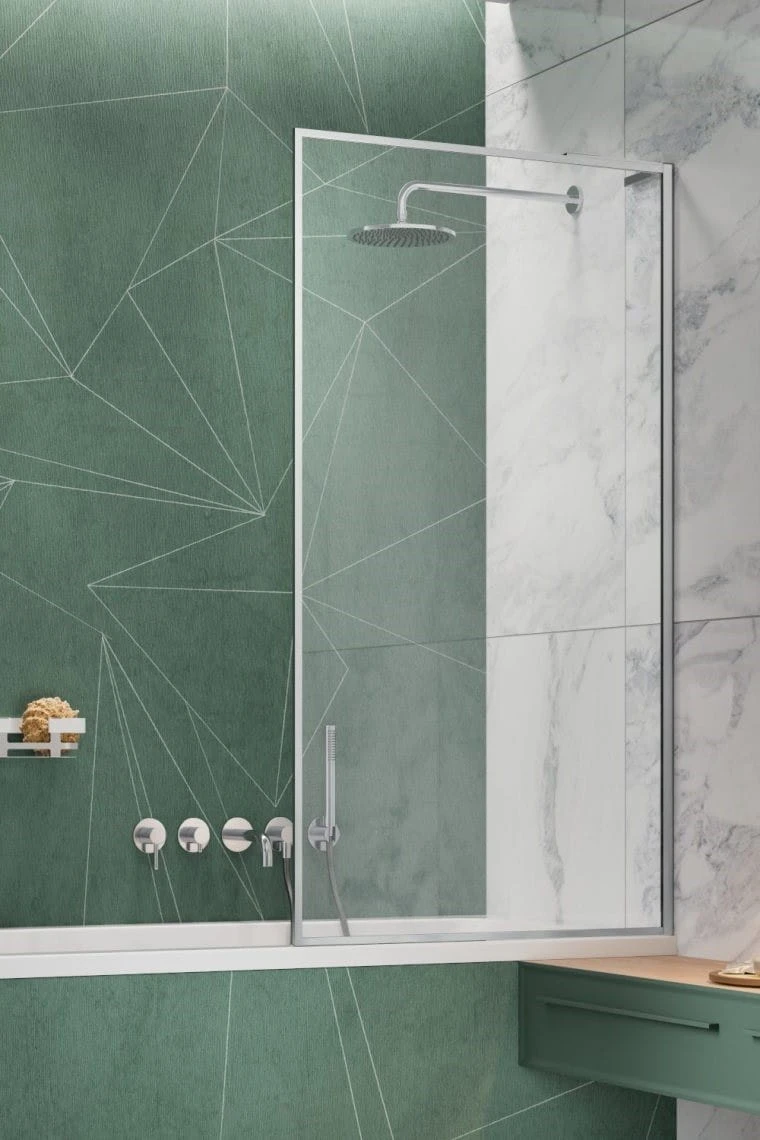 - Parawan jednoczęściowy nieruchomy, montowany na stałe do wanny.