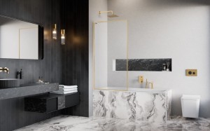 - Parawan jednoczęściowy nieruchomy, montowany na stałe do wanny.