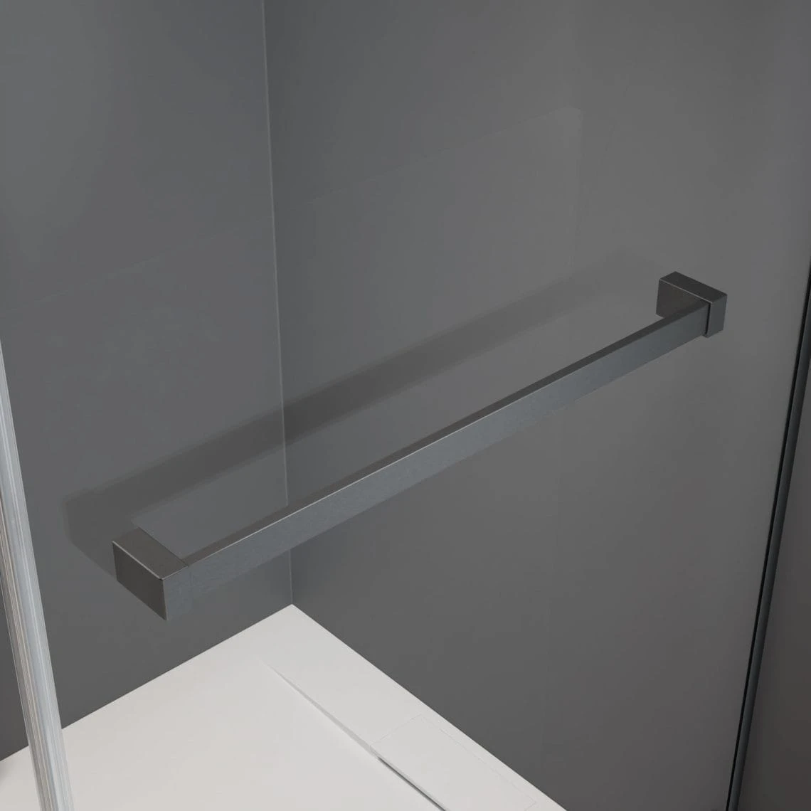 Parawan nawannowy Modo F SL Brushed GunMetal PNJ II firmy Radaway w ozdobnej ramie, ze stabilizatorem kątowym L w kolorze szczotkowanego GunMetalu.