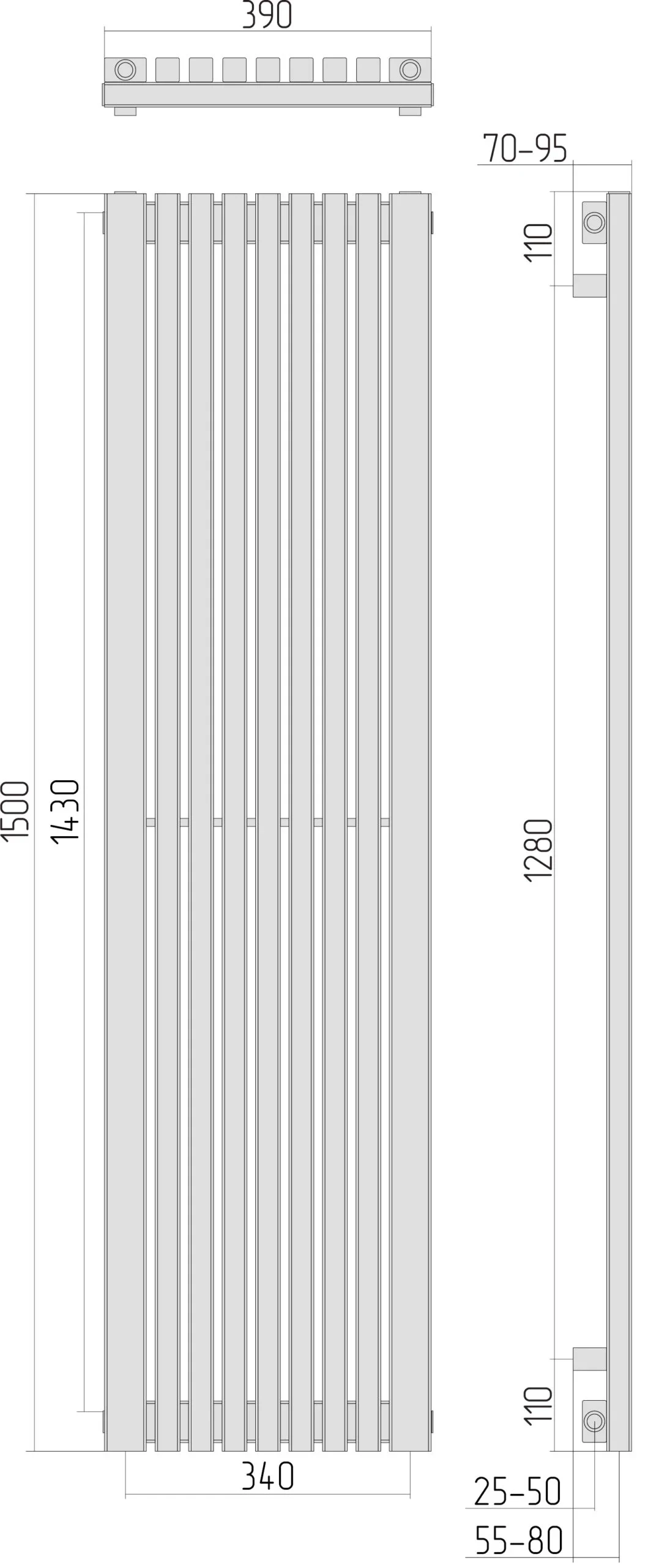 - Wymiary zewnętrzne (wysokość x szerokość): 1500x390 mm,