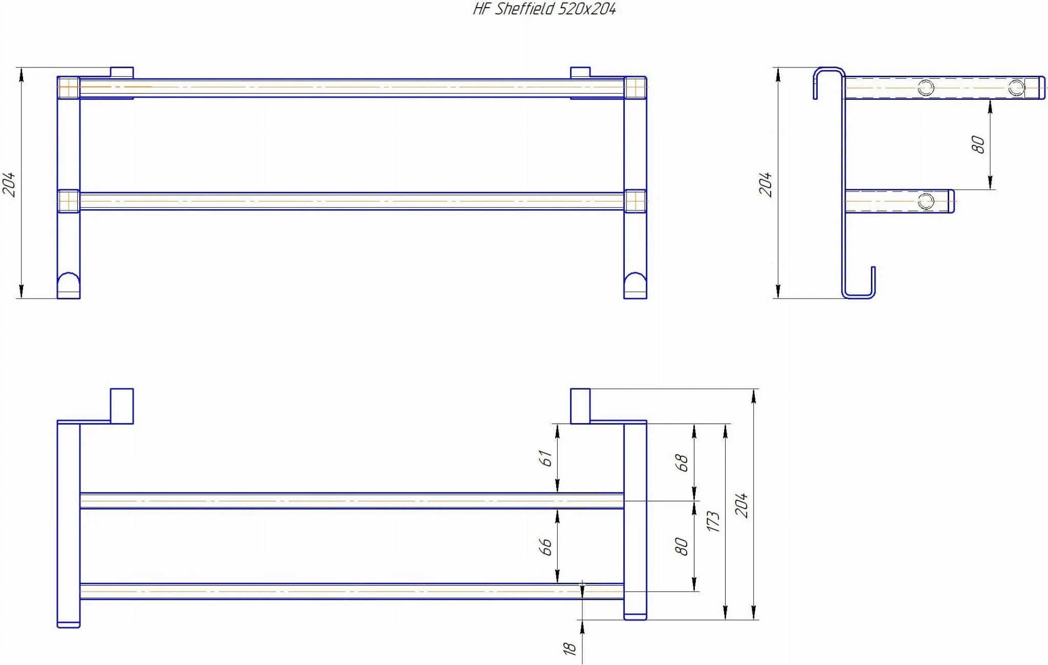 Półka przeznaczona do zawieszenia na grzejnikach firmy Hygge Family z okrągłymi profilami.