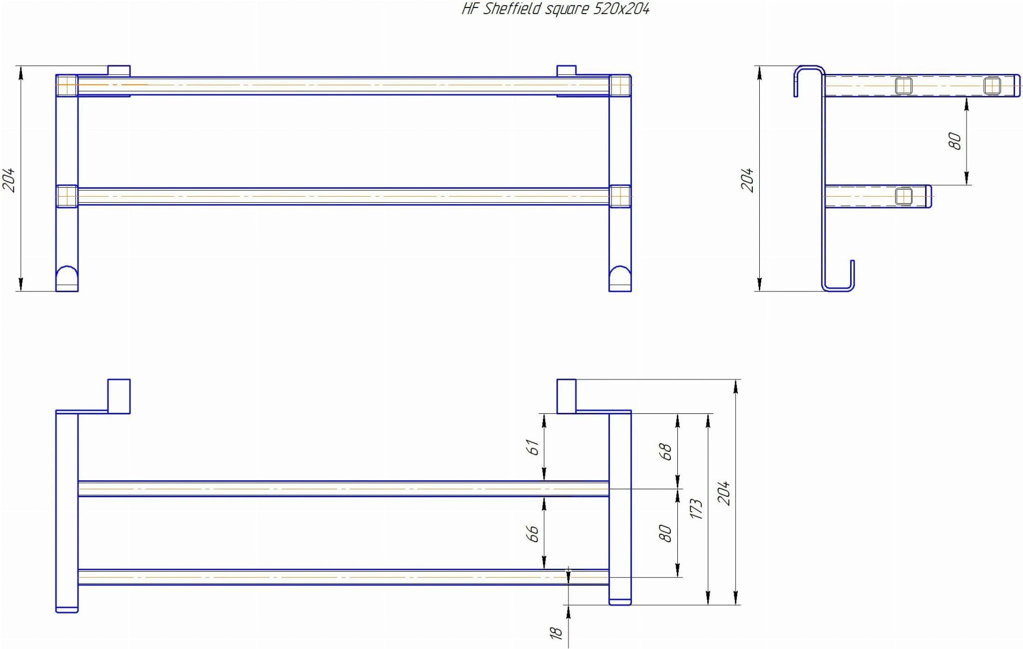 Półka przeznaczona do zawieszenia na grzejnikach firmy Hygge Family z kwadratowymi profilami.