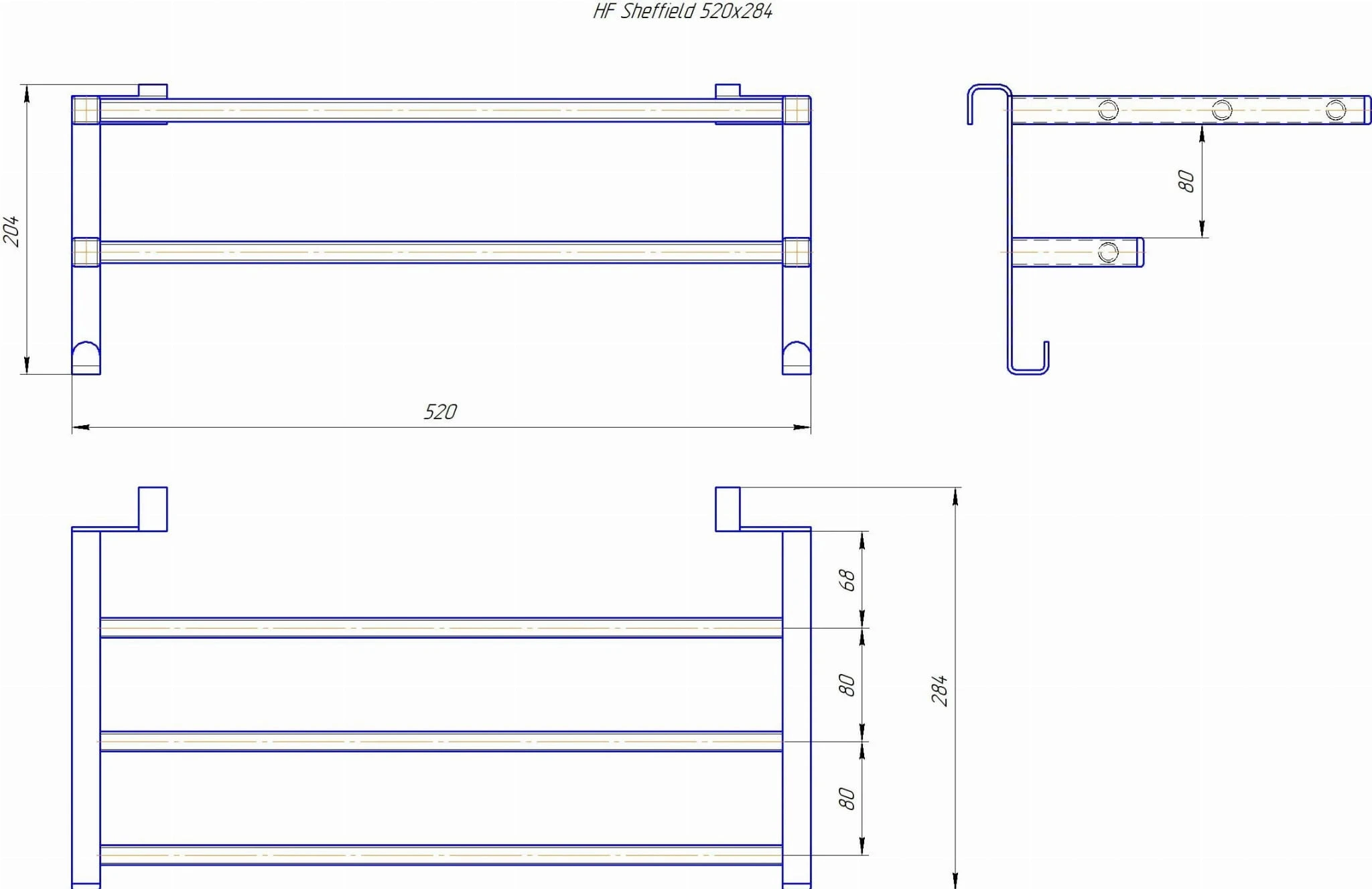 Półka przeznaczona do zawieszenia na grzejnikach firmy Hygge Family z okrągłymi profilami.