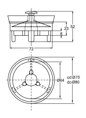 Wersja do syfonów brodzikowych o otworze w spuście ø 70mm do ø 80 mm