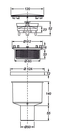 Syfon do brodzików z otworem ø 90 mm z zaworem antyzapachowym.